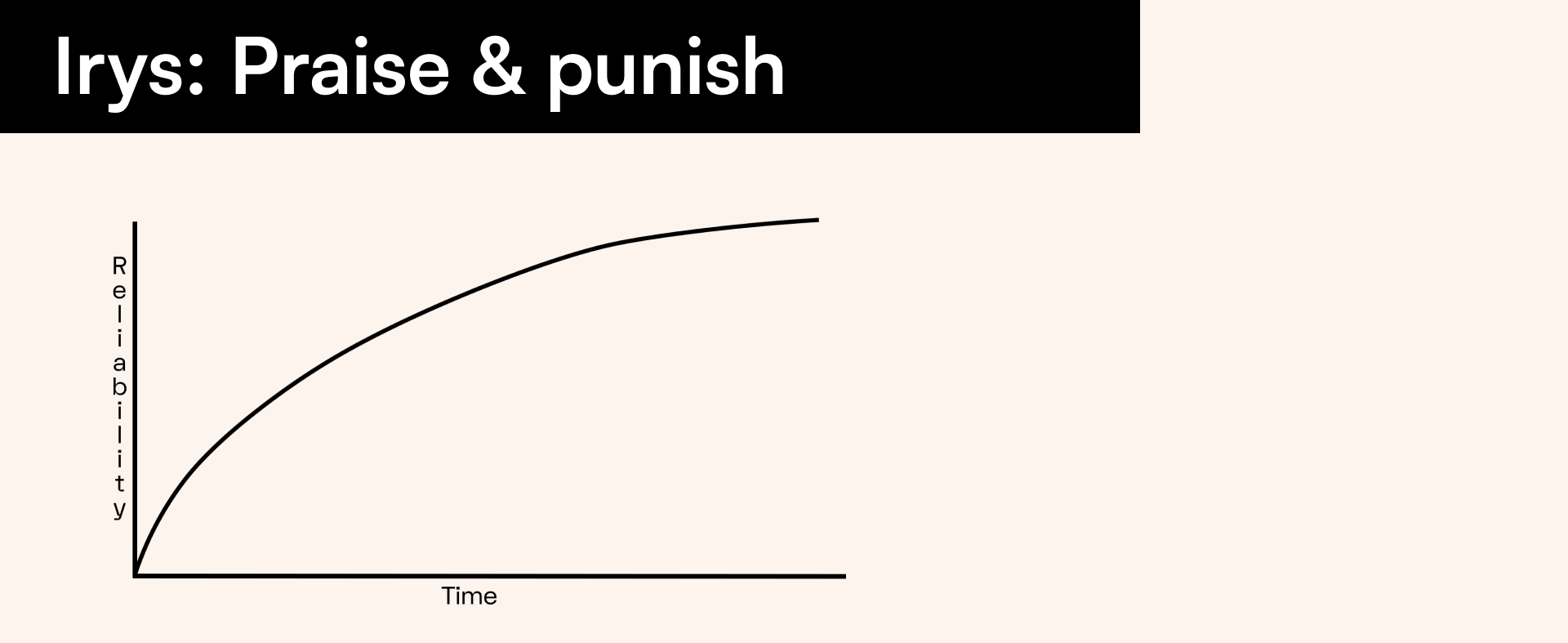 Irys decides which miners to seed your data to based on our internal reliability score. We constantly scan Arweave, starting first at a known miner, then recursively scanning all of its peers, all of those peer’s peers, and so on. Each miner is given a reliability score that while initially based on the scores of its peers, is continually updated based on that miner’s behavior. Miners are praised for good behavior and punished for bad behavior. As any one instance of bad behavior can be detrimental to the network, we use a logarithmic scoring system. The higher a miner’s score, the harder it becomes to increase that score. However, any instance of bad behavior causes an immediate and linear decrease in a miner’s score. Miners are extra careful to avoid bad behavior as a single instance will cause their score to drop significantly and due to the logarithmic scoring system, it will then take time to rebuild a previous reliability score.